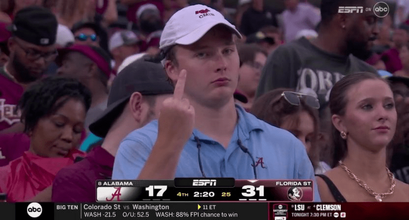 When Florida State smashed Alabama to start the season, the cameras caught this Bama fan flashing an ardent thumbs up: