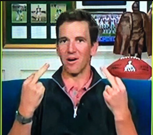 Eagles fans are known for their fervent thumbs up, as demonstrated on air by Eli Manning: